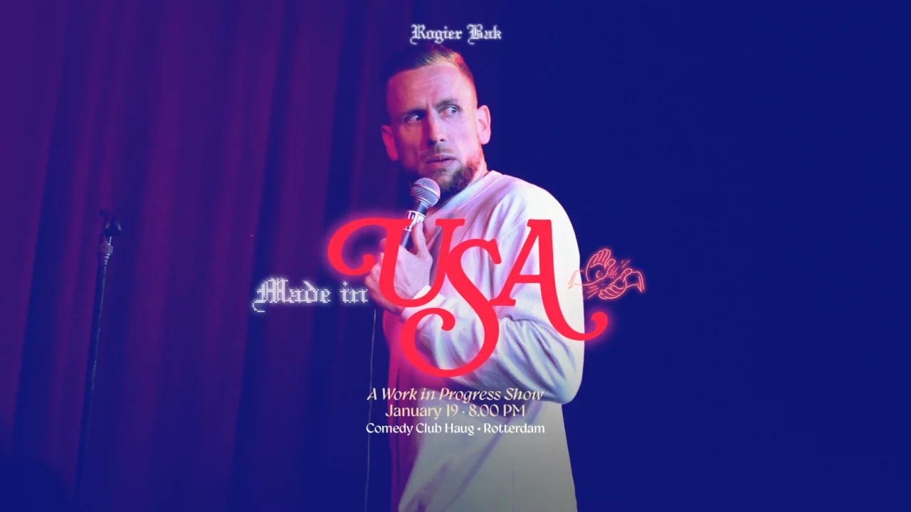 From Amsterdam to America and back again, Rogier Bak is a Dutch comedian who feels like a foreigner in his home country. He was made in the USA on his parents’ honeymoon in Washington DC, the nation’s capitol, only to enter the world in Amsterdam, the capital of loose morals.