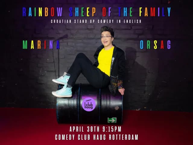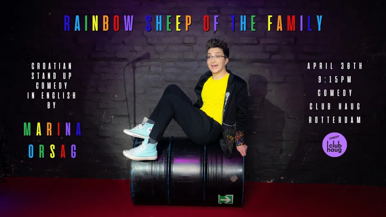 The first stand up comedian and designated lesbian in Croatia, Marina Orsag is coming to Rotterdam again to entertain you in English with her awarded show - Rainbow Sheep of the Family.