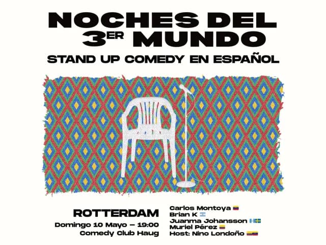 ¡Regresa a Rotterdam el Stand-Up en Español! El 10 de Mayo una nueva edición de Noches del 3er Mundo, un showcase de Stand-Up Comedy 100% en español, con los mejores comediantes hispanos de la región.