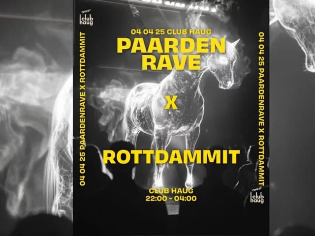 De wildste rave en de gekste comedyshow van Rotterdam komen samen voor een once-in-a-lifetime party-performance-rave-make-out-sessie: PAARD-DAMMIT.
